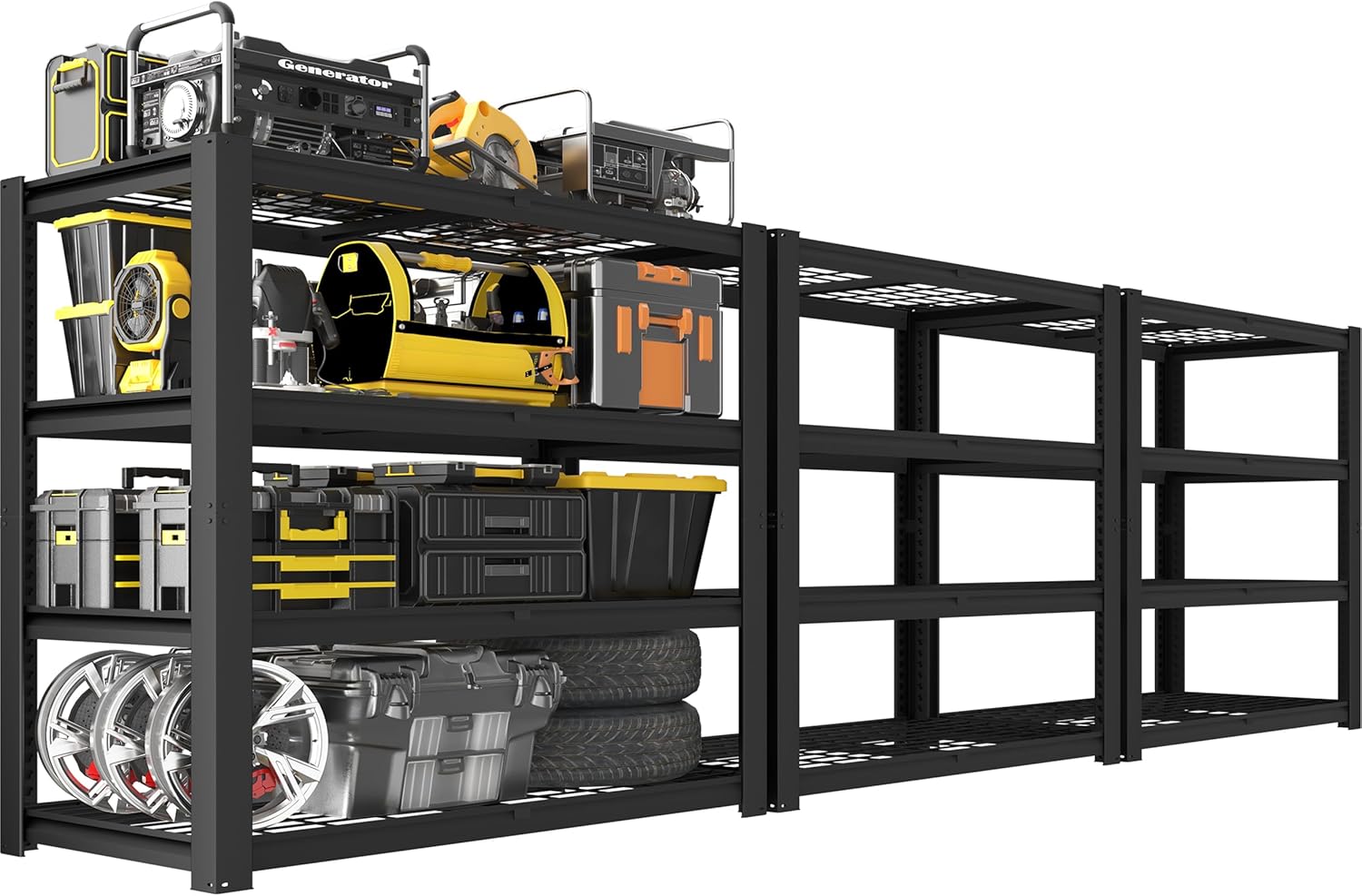 | Included Components | 4 x 48" W x 24" D x 72" H Garage Storage Shelving, 4 x Installation Manual, 4 x Rubber Hammer and Gloves, All Installation component |