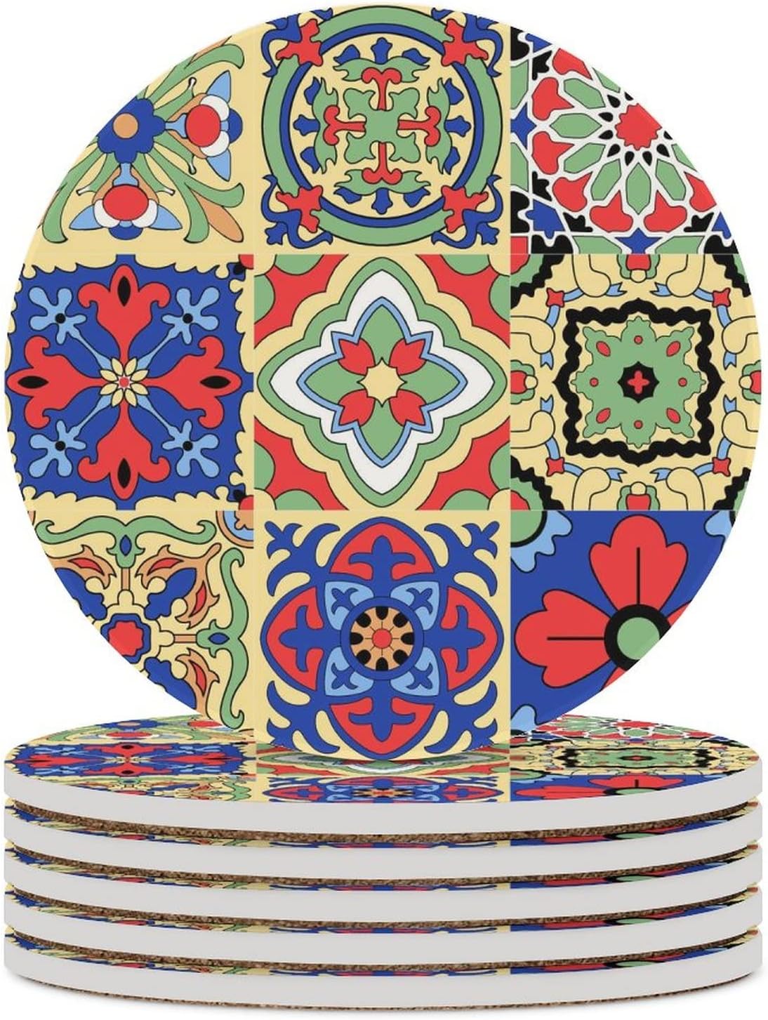 ENJOYING YOUR DRINKS BEGIN WITH USING GOKAYS COASTERS.Although you may not be aware, the tables on which you place the drinks become gradually damage if you aren’t using coasters, particularly the ones made of wood. Whether you’re a coffee fiend or beer enthusiast, having good coaster is necessary to prevent watermarks from forming on your tables.SPECIFICATIONS - Size:4 Inch/10 CM - Package:6PCS - Material:Ceramic - Design:Fashion Tie-dye Colorful RainbowWHY CHOOSE GOKAYS DRINK COASTERS?✔PREMIUM CERAMIC TOP - The ceramic top can absorb coffee stains in 5-10 seconds. - More durable than other coaster made of all-cork. - Easy to Clean, stubborn on ceramic topstains can be wiped by wet towel or brush.✔CORK BOTTOM - Prevent ceramic from scratching the table. - NON-SLIP FEATURE that does not slip even on a smooth table.✔GREAT DESIGN - Not solely a coaster set, but also a decorative element. Featuring with rustic design, these coasters will look adorable on your table, and liven up your rustic table décor.✔WIDE APPLICATION - Coasters with a big 4 inches (10cm) diameter size match almost all types of cups and mugs, making them fit with coffee cups, kids' drinks, sports bottles, craft cocktails, or tumblers.✔BEST GIFT - Great idea for gifts for friends' birthday, housewarming, wedding, mother's day, father's day, Christmas, Thanksgiving Day and other memorable days. As creative gifts, our ceramic coasters will match almost any decor in your home.
